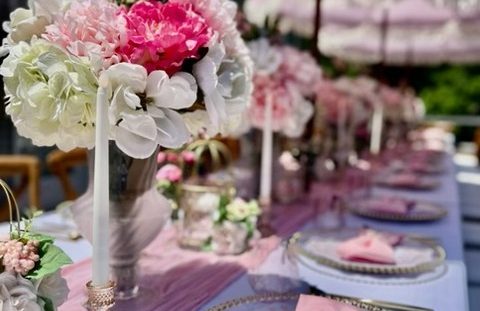 Elevated tier including all of basic plus, custom signage, tablescape for up to 80, upgraded centerpieces, and entry moment. Pricing starting at $3,000.